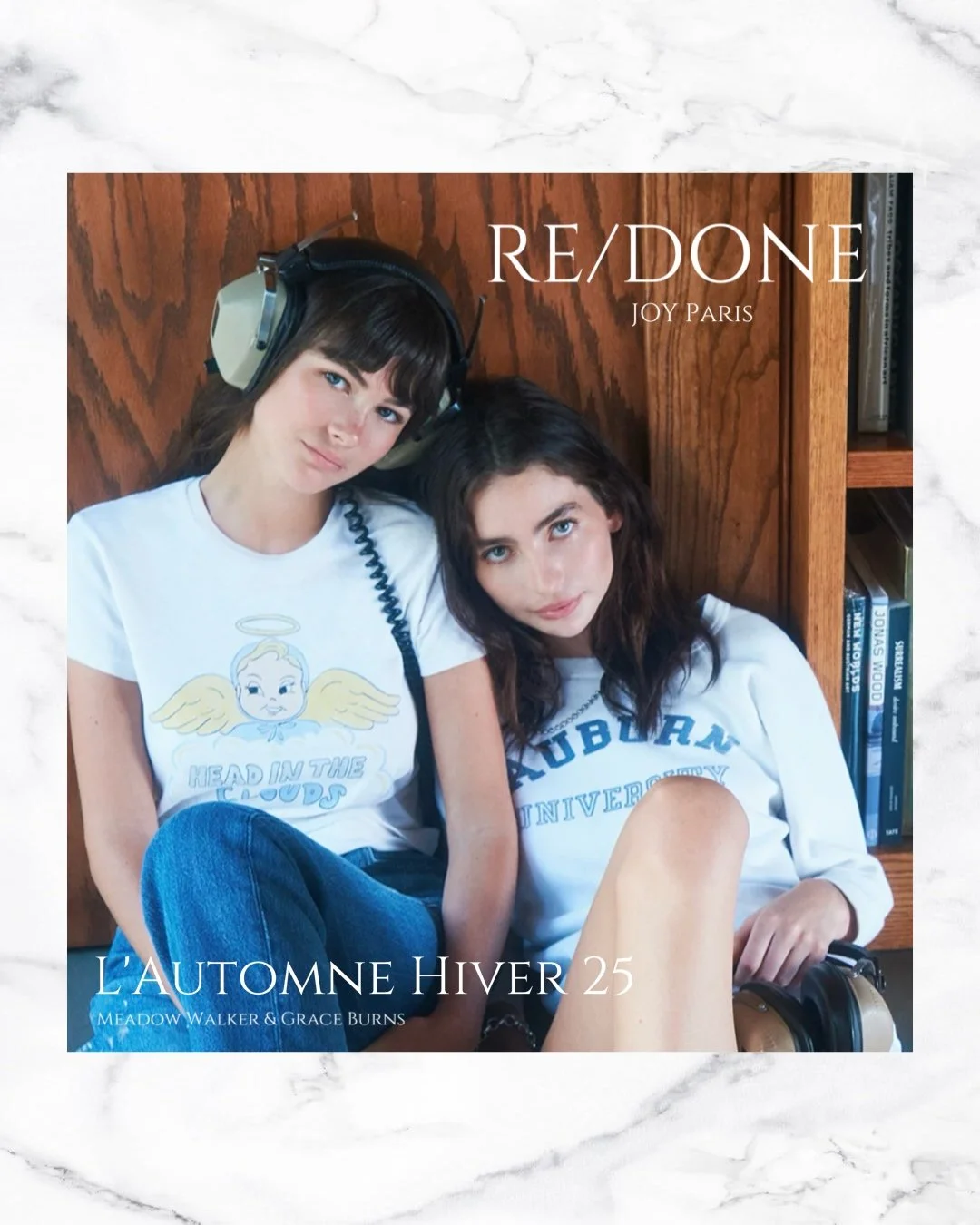 — Born in 2014, in L.A., RE/DONE est fondée par Sean Barron et Jamie Mazur, des jeans aux coupes inspirées des 90s, des collections eco friendly et issues de l’upcycling. Les matières sont prémiums, les coupes casual chic toujours hyper confort dans une dégaine floutée du jean porté, reporté jamais lâché.