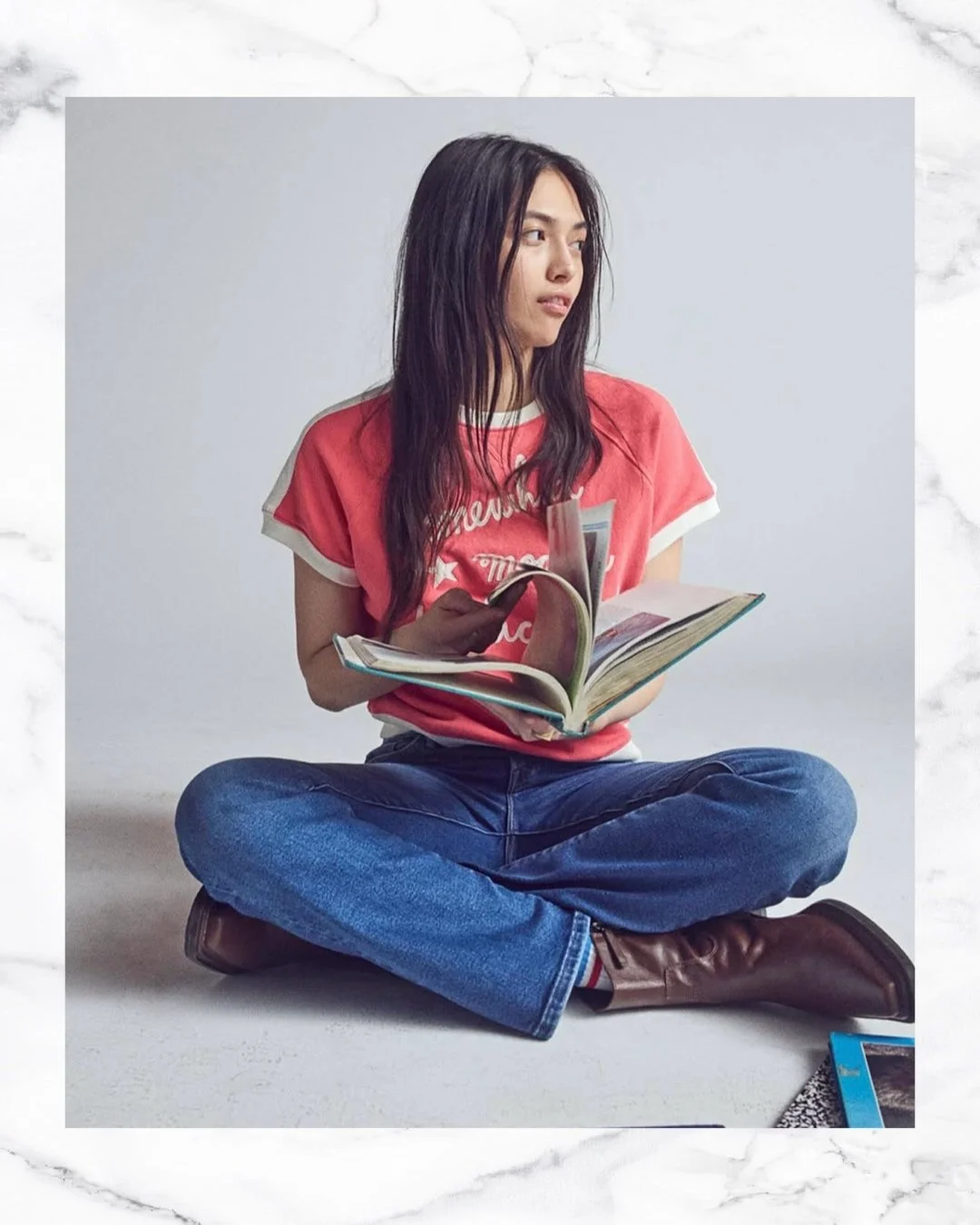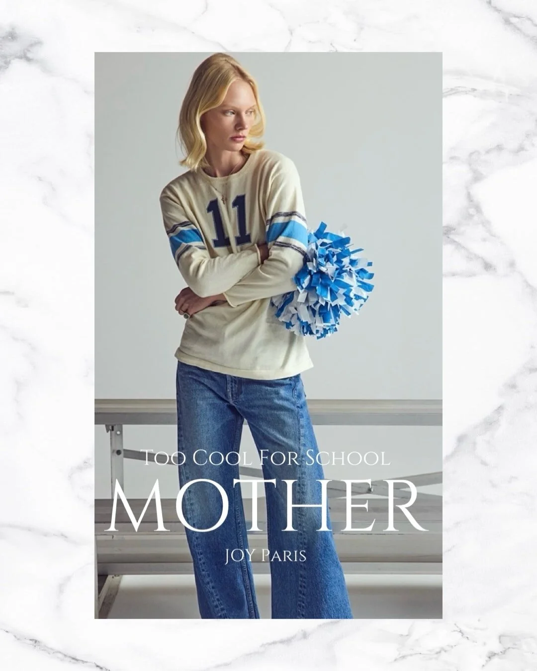— Back to school, 90s are back ! La marque de jean culte MOTHER revient pour une saison gorgée de liberté. L’insouciance des 90s, ses jeans portés, reportés, jamais quittés, coupés dans des cotons ultra confortables et d’une incroyable souplesse, taille haute ou taille basse. Les 90s signent aussi le retour des t-shirt à motifs tout mignons à porter en seconde peau ou en mode boyfriend oversized ou noués sur le côté, on a craqué pour les RE/DONE, la Californie est une source inépuisable de #MustHave. Des teintes lavées, washées par le soleil, que l’on va glisser sous les gilets en maille Nuage de MASSCOB, d’une douceur à couper le souffle.